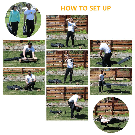 KingCamp Hammock with Stand, Portable Folding Large Oversized XL Heavy Duty Ultralight Lay Flat Sleeping Camping Cot with Carry Bag for Adult Outside Outdoor Backpacking Travel Patio Backyard, Black