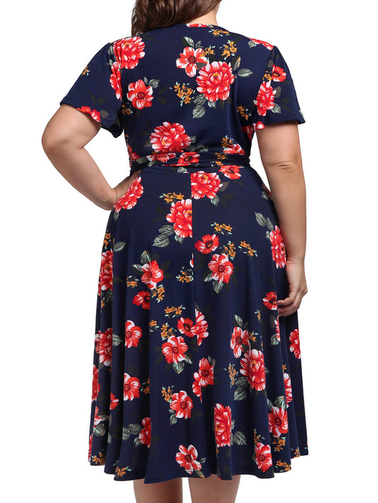 kissmay Plus Size Cocktail Dresses, Plus Size Fit and Flare Dresses for Women Slim Fitting Elasticity Clothing Ruched Flows Sweet Dress for Casual Short-Sleeve 1950s Lavender Dress Navy Red 20W