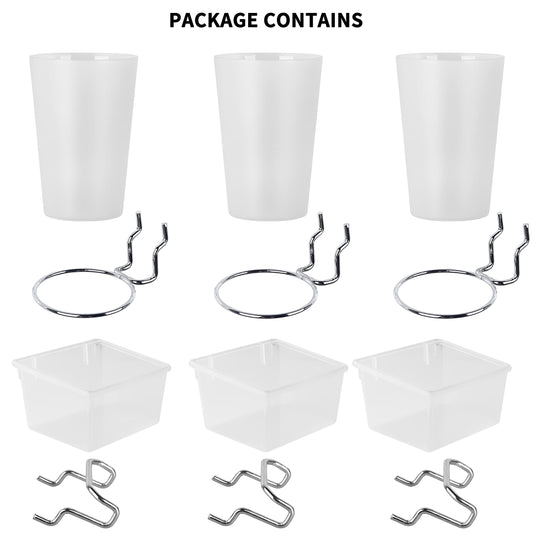 Kuhome 6 Sets Pegboard Bins and Cups with Pegboard Hooks, Pegboard Accessories Baskets, Hooks for Pegboard Cup Holder for Organizing Craft Tools Storage Garage Office Workbench Transparent