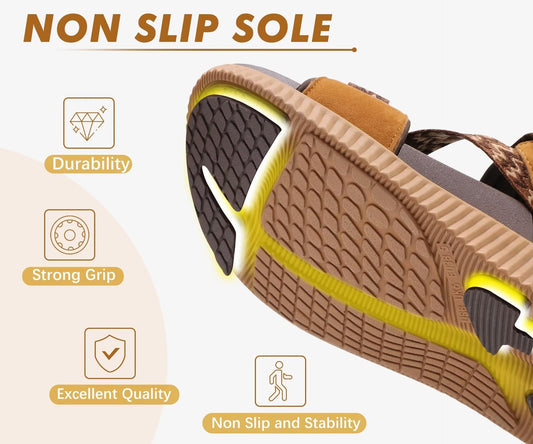 KuaiLu Walking Orthopedic Sandals Womens Comfortable Arch Support Hiking Sandles Plantar Fasciitis Athletic Sport Recovery Cushion Summer Travel Outdoor Open Toe Water Sandals Brown Khaki Size 11