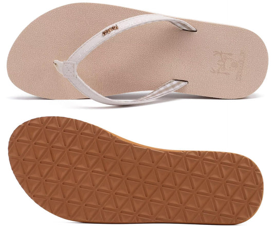 KuaiLu Womens Arch Support Flip Flops Comfortable Yoga Mat Slip on Leather Walking Thong Cushion Sandals Summer Beach Orthotic Slides Travel Essentials Indoor Outdoor Slippers Shoes Beige Size 5