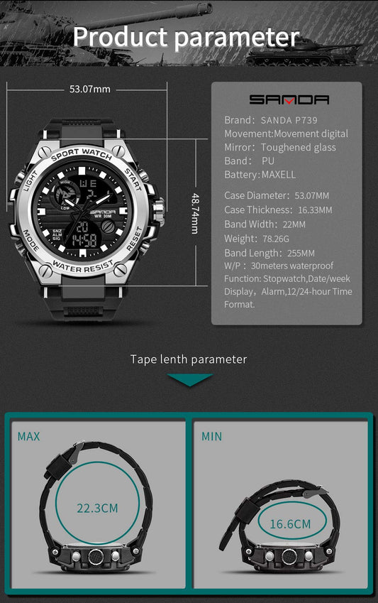 KXAITO Men's Watches Sports Outdoor Waterproof Military Watch Date Multi Function Tactics LED Face Alarm Stopwatch for Men (6256 Black)