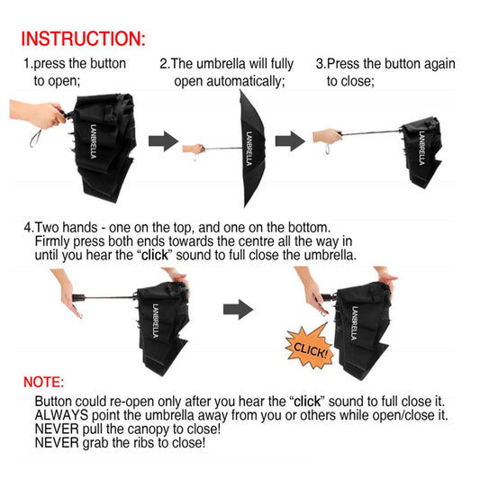 LANBRELLA Compact Reverse Folding Umbrella Auto Windproof Travel Umbrella-Black