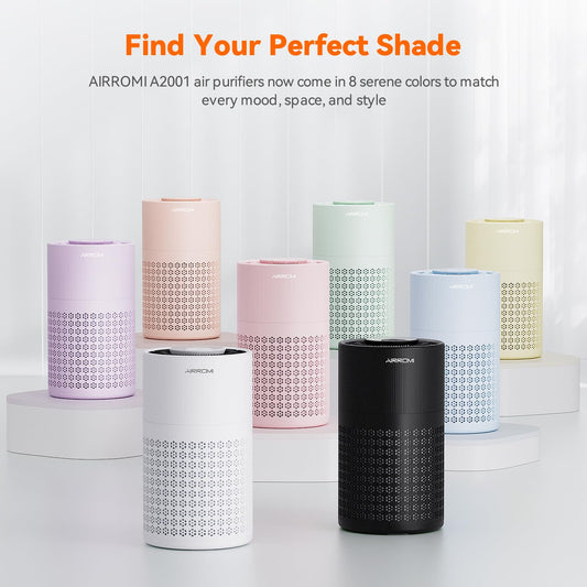 AIRROMI Air Purifier for Bedroom with HEPA 3-in-1 Filter, Pet Air Purifier for Home Cat Pee Smell, Covers Upto 990 Ft², Quiet 360°intake Air Cleaner for pet hair,allergies,Dust,Smoke A2001 Green