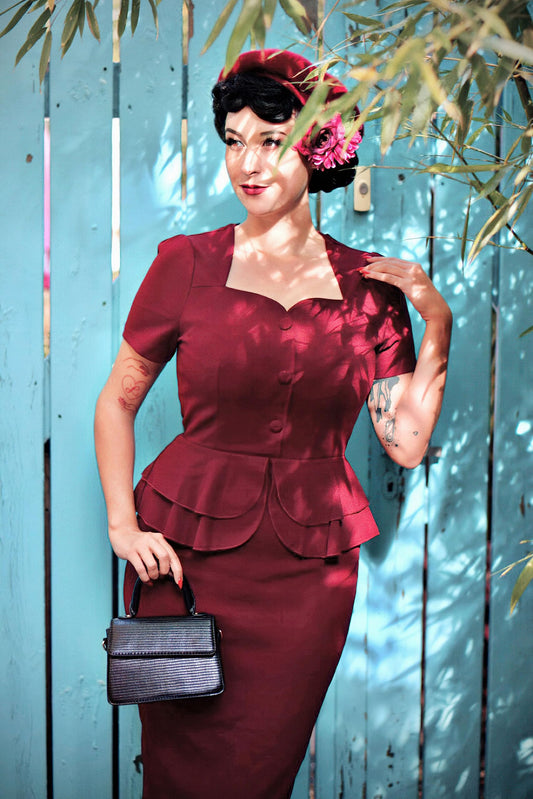 AISIZE Women's 1940s Vintage Square Peplum Bodycon Cocktail Dress XX-Large Burgundy