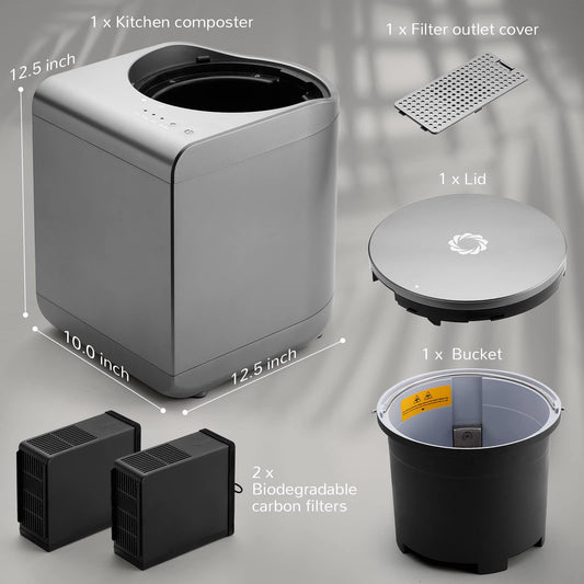 Airthereal Revive Electric Kitchen Composter, SHARKSDEN Tri-Blade, Turn Food Waste and Scraps into Dry Compost Fertilizer for Plants, R500 Gray