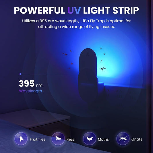 LiBa Fly Trap Indoor for Home, Plug-in Flying Insect Trap for Flies, Fruit Flies, Moths, Gnats, Mosquito Killer Insect Catcher Fly Tapper with 3 Refill Glue Cards for Home Office