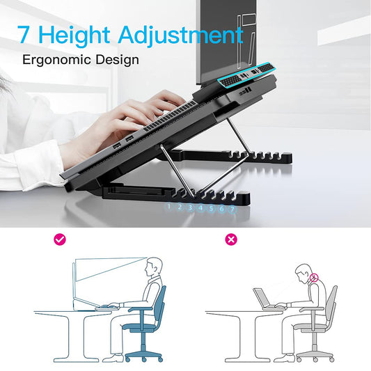 LIANGSTAR Laptop Cooling Pad, Laptop Cooler with 6 Quiet Fans for 12-17 Inch Notebook Gaming Fan Stable Stand, 7 Height & Wind Speed Adjustable, 2 USB Port & Phone Holder (Black)