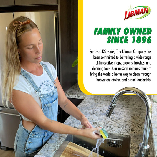 Libman Dishmatic I-Stand Dish Wand Kit, Kitchen Cleaning Scrub Brush with Handle and Soap Dispenser for Scrubbing and Washing Dishes, Refillable Standing Dispensing Scrubber Brushes, 3 Sponge Refills