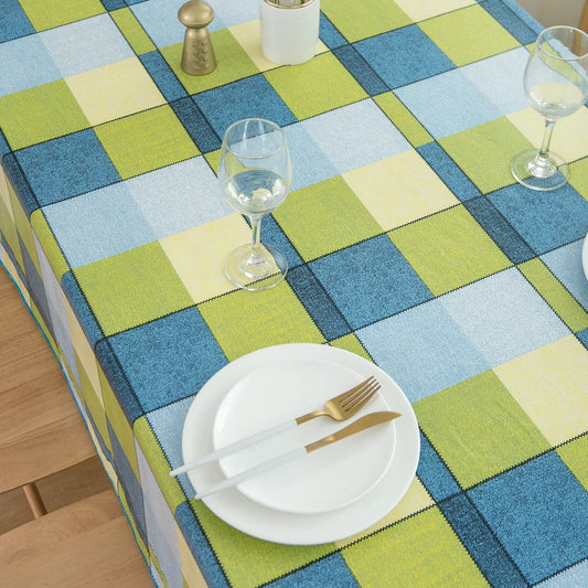 LIBERECOO Vinyl Tablecloth with Flannel Backing, 60 x 102 Scottish Checkered Stain-Resistant Rectangle PVC Flannel Backed Table Cover Waterproof Wipeable for Indoor and Outdoor