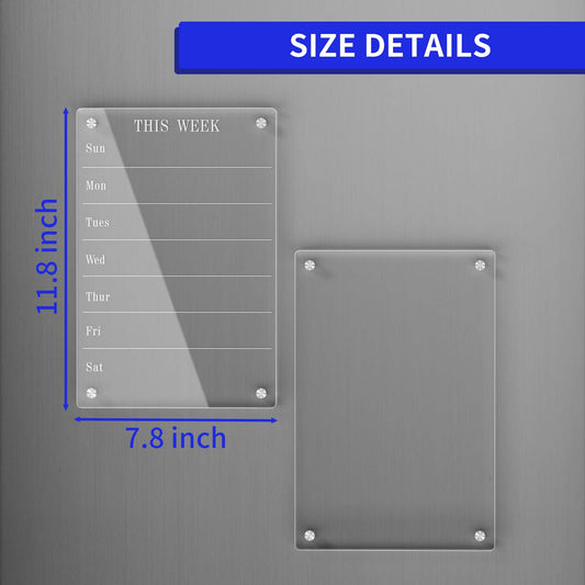 AITEE Acrylic Magnetic Weekly Meal Planner for Fridge, Clear Set of 2 Dry Erase Board Calendar and Memo for Refrigerator Reusable Week Planner, Includes 6 Dry Erase Markers With 3 Colors(8"x12"Inches)