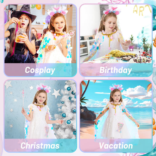 LIMIROLER Princess Dress Up Toys Princess Dress Up Clothes Rainbow Mermaid Cape Kit 9 Pcs Gift Set for Little Girls 3-8 Years Old, Great Gift Set for Birthday Christmas Halloween (Rainbow Pink)