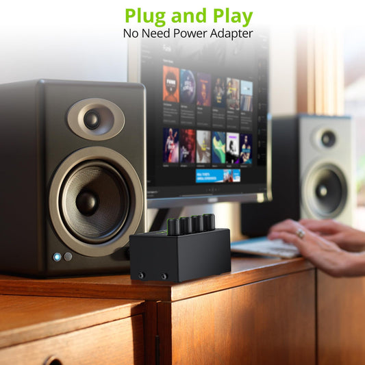 LiNKFOR 4 Channel Stereo Audio Mixer CX400 Metal Shell Support RCA Input and Output Mini Passive Stereo Mixer with Separate Volume Controls