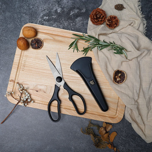 Linoroso Kitchen Shears Heavy Duty Kitchen Scissors with Magnetic Holder, Dishwasher Safe Scissors All Purpose Come Apart Blade Made with Japanese Steel 4034 for Meat/Vegetables/BBQ/Herbs, Black