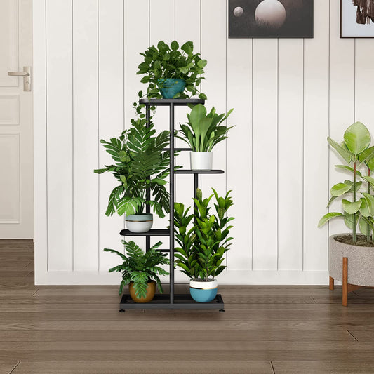 LINZINAR Plant Stand Indoor Outdoor Metal 4 Tier 5 Potted Multiple Flower Pot Holder ShelfPlanter Display Shelving Unit for Patio Garden Corner Balcony Living Room