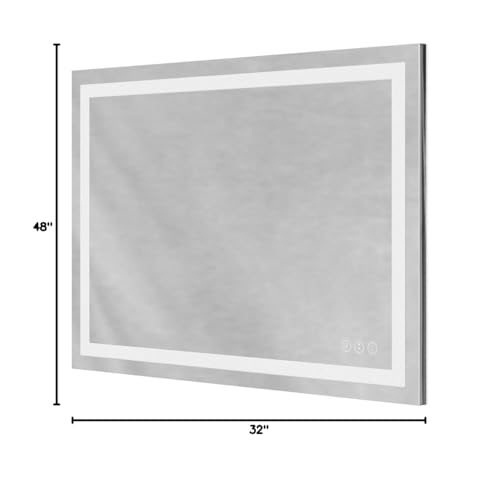 LOAAO 48X32 LED Bathroom Mirror with Lights, Anti-Fog, Dimmable, Backlit + Front Lit, Lighted Bathroom Vanity Mirror for Wall, Memory Function, Tempered Glass (Safe to Use)