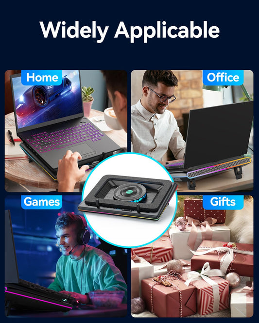 llano V12 RGB Laptop Cooling Pad, Gaming Laptop Cooler with 5.5 Inch Powerful Turbofan, Fast Cooling Laptop 15.6-21in, Adjustable Speed, Touch Control, LCD Screen, Black
