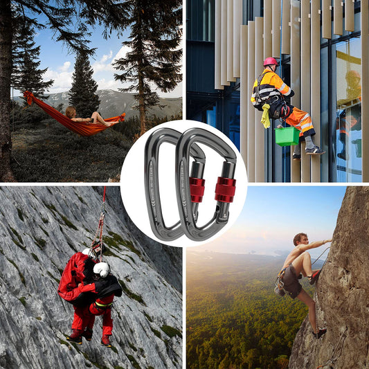Locking Carabiner - 25kN 5600lb Climbing Carabiner Screw Gate D Shape Carabiner Silver (Pack of 5)