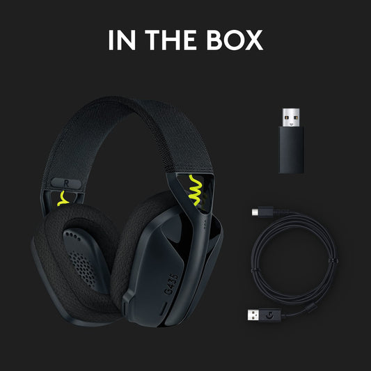 Logitech G435 LIGHTSPEED and Bluetooth Wireless Gaming Headset - Lightweight over-ear headphones, built-in mics, 18h battery, compatible with Dolby Atmos, PC, Mobile - Black