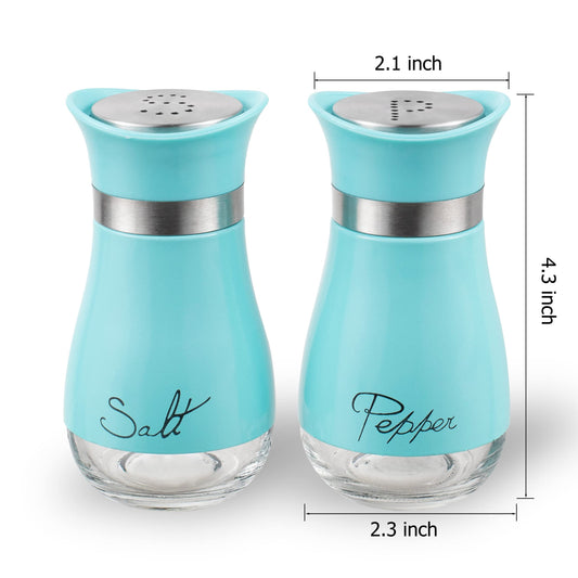 Lonffery Salt and Pepper Shakers, Stainless Steel and Glass Bottle, Set of 2, Turquoise
