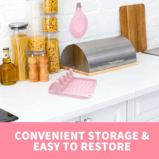 LSVGOE 2 Pack Multiple Utensil Spoon Rest with Drip Pad Non-Slip Heat Resistant Kitchen and Grill Spoon Holder for Spatula, Ladle, Tongs, Kitchen Gadgets, and Cooking Accessories (Cute Pink)