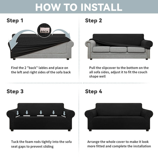 LURKA Stretch Sofa Slipcovers Couch Covers for 3 Cushion Couch Sofa Pet Friendly Non Slip Sofa Cover Washable Furniture Protector with Elastic Bottom (Large, Black)