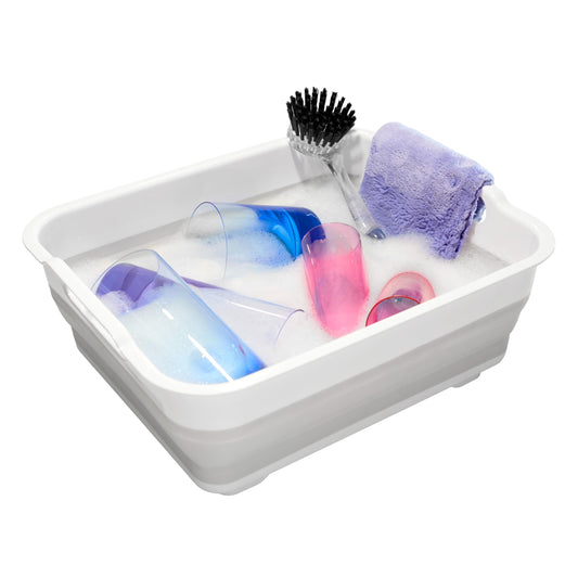 Madesmart Collapsible Dishwashing Basin with Handles, Plastic Pop-Up Dish Wash Basin for Kitchen Counters, Gray/White