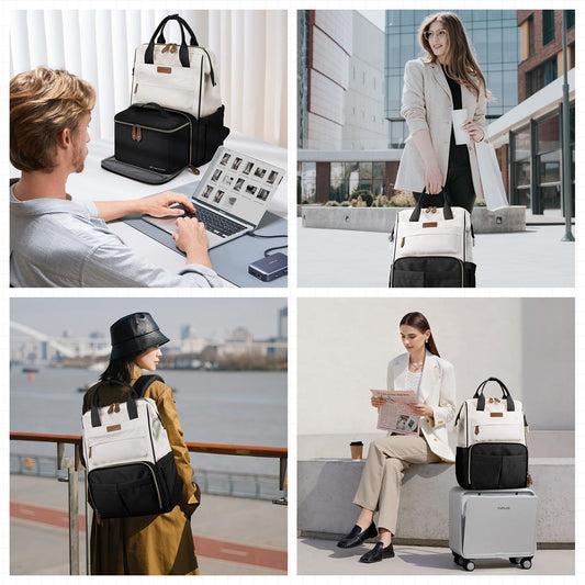 Maelstrom Travel Backpack for Women Men,Laptop Backpack Fits 15.6-17.3 Inch Laptop, Nurse/Teacher/Work Bag with Insulated Lunch Box,Water Resistant Carry On Backpack,Black-Beige