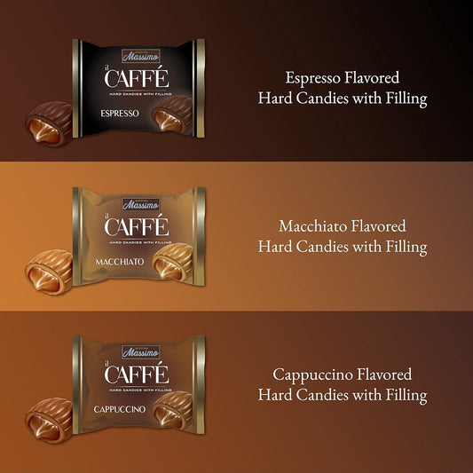Maestro Massimo Center Filled Hard Pocket Coffee Candy, 3mg Caffeine per Candy, Individually Wrapped, Macchiato, Espresso, Cappuccino Flavored, 2.2 Pound Bulk Bag - Pack of 1