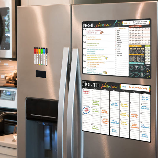 Magnetic Dry Erase Chore Chart and Menu Board Set for Kitchen Fridge - 11" x 17" Responsibility & Behavior Refrigerator Reward Incentive for Kids - 11" x 17" Weekly Meal Planner Blackboard