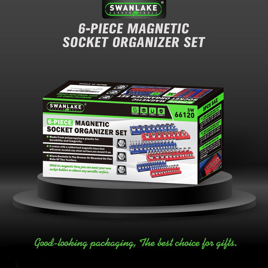 Magnetic Socket Organizer Set, 6PCS Socket Holder, 1/4", 3/8", 1/2" Sockets Holds 143 Pieces Magnetic Sockets Trays (Blue&red, 6 Pcs)