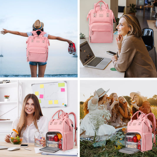 MAQTOIZ Women's Insulated Laptop Backpack Lunch Cooler Bookbag with USB Port for Women (15.6/14/13 Inch Laptop), Gift For Her