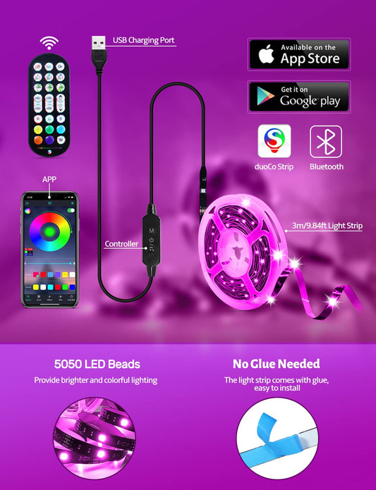 MATICOD LED Lights for TV Led Backlight, 9.84 RGB Led Strip Lights USB TV Lights Behind 32-43 TV, APP Remote Control Music Sync TV LED Lights