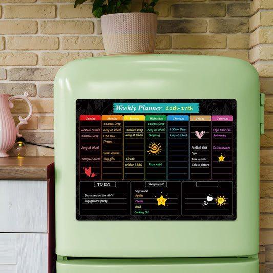 MaxGear Black Weekly Dry Erase Board,16"x12" Magnetic Whiteboard Meal Planner Blackboard for Fridge, Chalkboard Calendar Menu Planning Board Notepad for Kitchen with 7 Markers and 1 Eraser