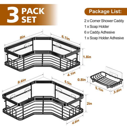 MAXIFFE Shower Caddy Organizer, 3-Pack Corner Shower Caddy Organizer Shelves Storage Rack Accessories for Bathroom Countertop Home Decor Set, Black