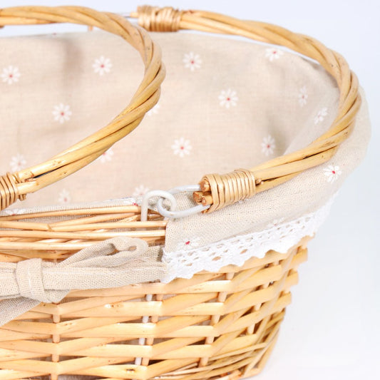 MEIEM Wicker Gift Baskets Empty Oval Willow Woven Picnic Cheap Easter Candy Storage Wine Basket with Handle Egg Gathering Wedding Basket (Natural)