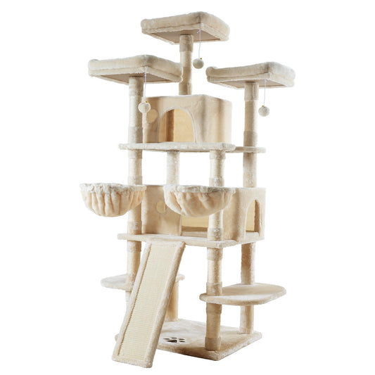 Allewie 68 Inches Cat Tree/House and Towers for Big Feline/Scratching Post/Multi-Level Large Kitty Climbing Tree with Condo/Beige