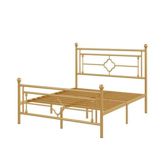 Allewie Queen Size Metal Platform Bed Frame with Victorian Vintage Headboard and Footboard/Mattress Foundation/Under Bed Storage/No Box Spring Needed/Noise-Free/Easy Assembly, Gold