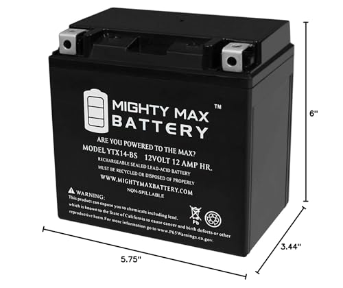 Mighty Max Battery YTX14-BS - 12 Volt 12 AH, 200 CCA, Rechargeable Maintenance Free SLA AGM Motorcycle Battery