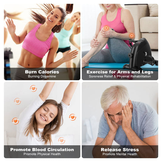 Mini Exercise Bike, AGM Under Desk Bike Pedal Exerciser Foot Cycle Arm & Leg Peddler Exerciser Machine with LCD Screen Displays (Black)