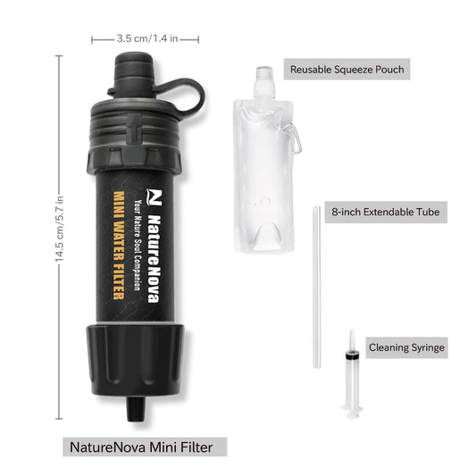 Mini Water Filter NatureNova Portable Emergency Water Filtration System Hiking Camping Straw Survival Gear Emergency Preparedness(Black, 1 Pack