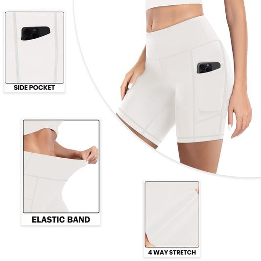 MIRITY High Waist Workout Biker Shorts with Pockets for Women - Buttery Soft Workout Yoga Shorts Pack of 1 White