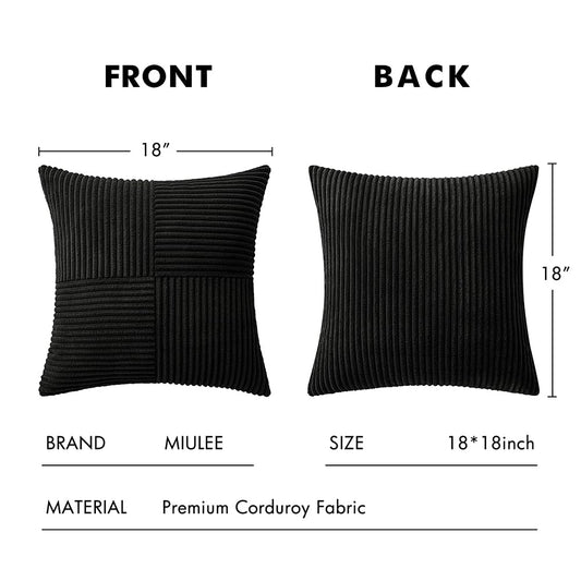 MIULEE Black Corduroy Pillow Covers Pack of 2 Boho Decorative Spliced Throw Pillow Covers Soft Solid Couch Pillowcases Cross Patchwork Textured Cushion Covers for Living Room Bed Sofa 18x18 inch