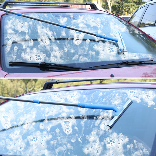 Mitclear Window Cleaner with Long Handle(57IN), Glass Cleaning Tools with Silicone Squeegee & Microfiber Scrubber, Window Cleaning Kit for Shower Glass Mirror Door Car