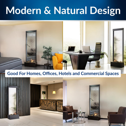 Alpine Corporation Mirror Waterfall Fountain with Stones and Lights - Zen Indoor/Outdoor Decor for Office, Living Room, Patio, Entryway - 72 Inches