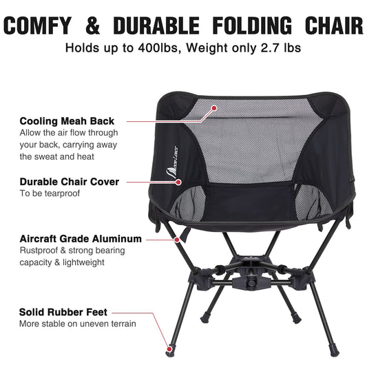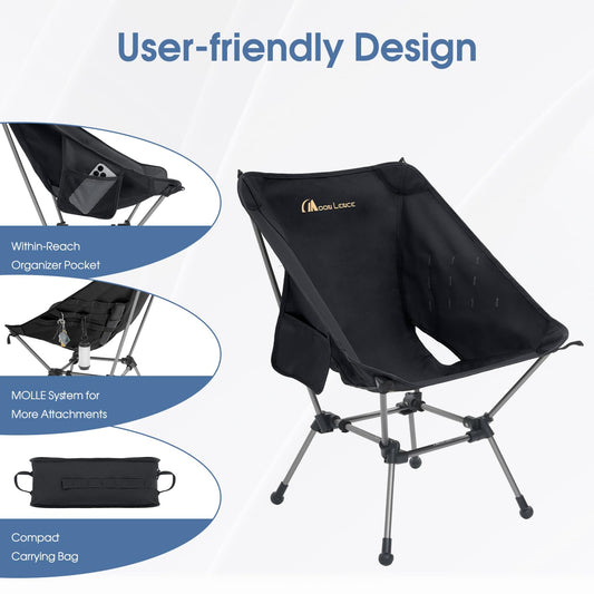 MOON LENCE Portable Camping Chair Plus, Larger & Roomier, Compact and Lightweight Still, Folding Chair for Backpacking & Hiking, 330Lbs Capacity (Black)
