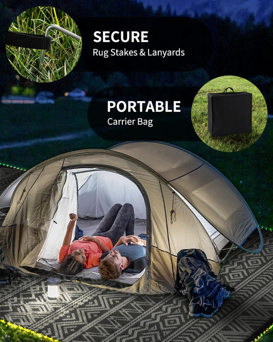 MontVoo-Outdoor Rug Carpet 9x12 ft for Patio RV Camping with Led Strip Lights Waterproof Plastic Straw Rug Reversible Portable Outside Indoor Outdoor Rug Mat for Patio Decor Balcony Picnic-Boho Rug