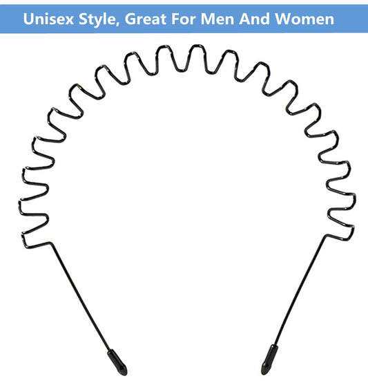 bodbop Metal Hair Band for Men Headband Women Bands Unisex Black Wavy Spring Outdoor Sports Headbands Men's Hoop Clips Accessories Simple Elastic Non Slip Head Headwear