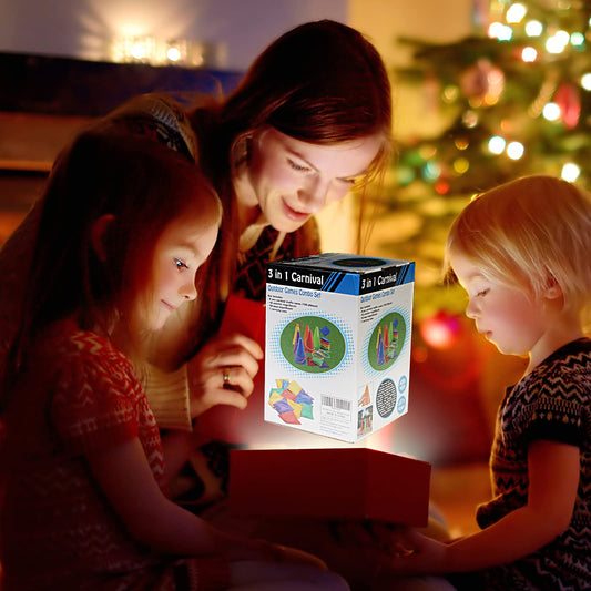 Win SPORTS 3 in 1 Carnival Outdoor,Combo Games Set,Soft Plastic Cones,Cornhole Bean Bags,Ring Toss Game,Kids Birthday Party Outdoor Games Supplies 26 Piece Set