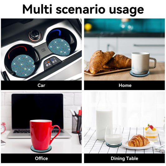 Ziciner 4 Pack Bling Car Cup Holder Coaster, 2.75 Inch Anti-Slip Auto Insert Cup Coaster, Crystal Car Drink Cup Mat Perfect for Women Girls, Universal Interior Decor Accessories (Blue)